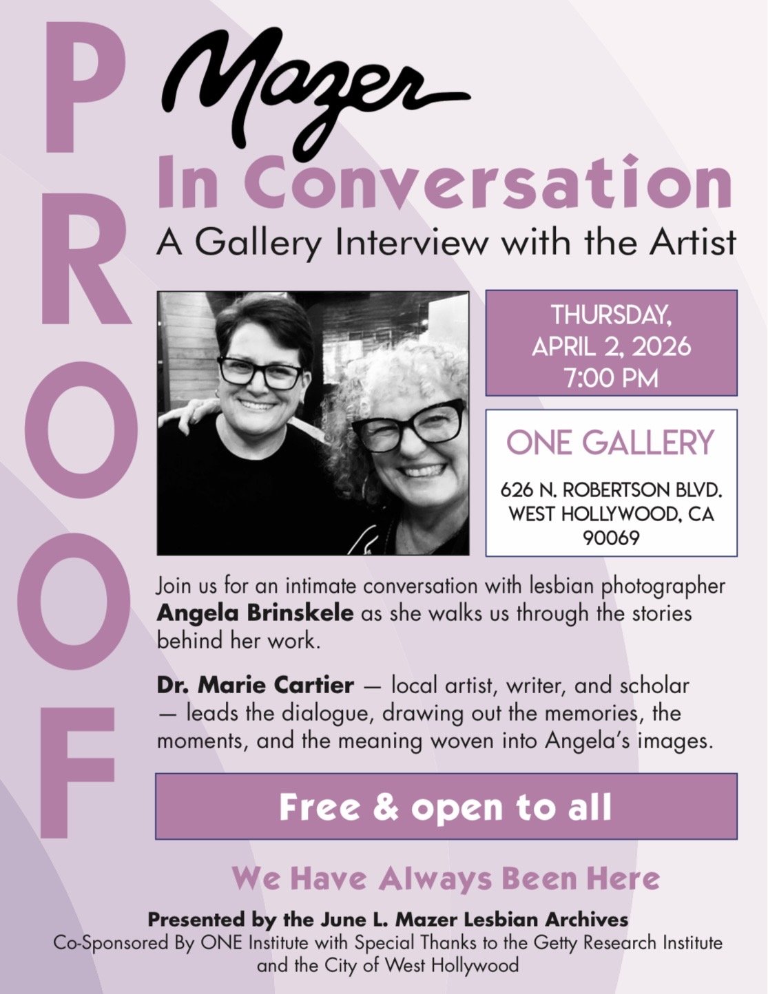 Join us for an intimate conversation with lesbian photographer Angela Brinskele as she walks us through the stories behind her work.